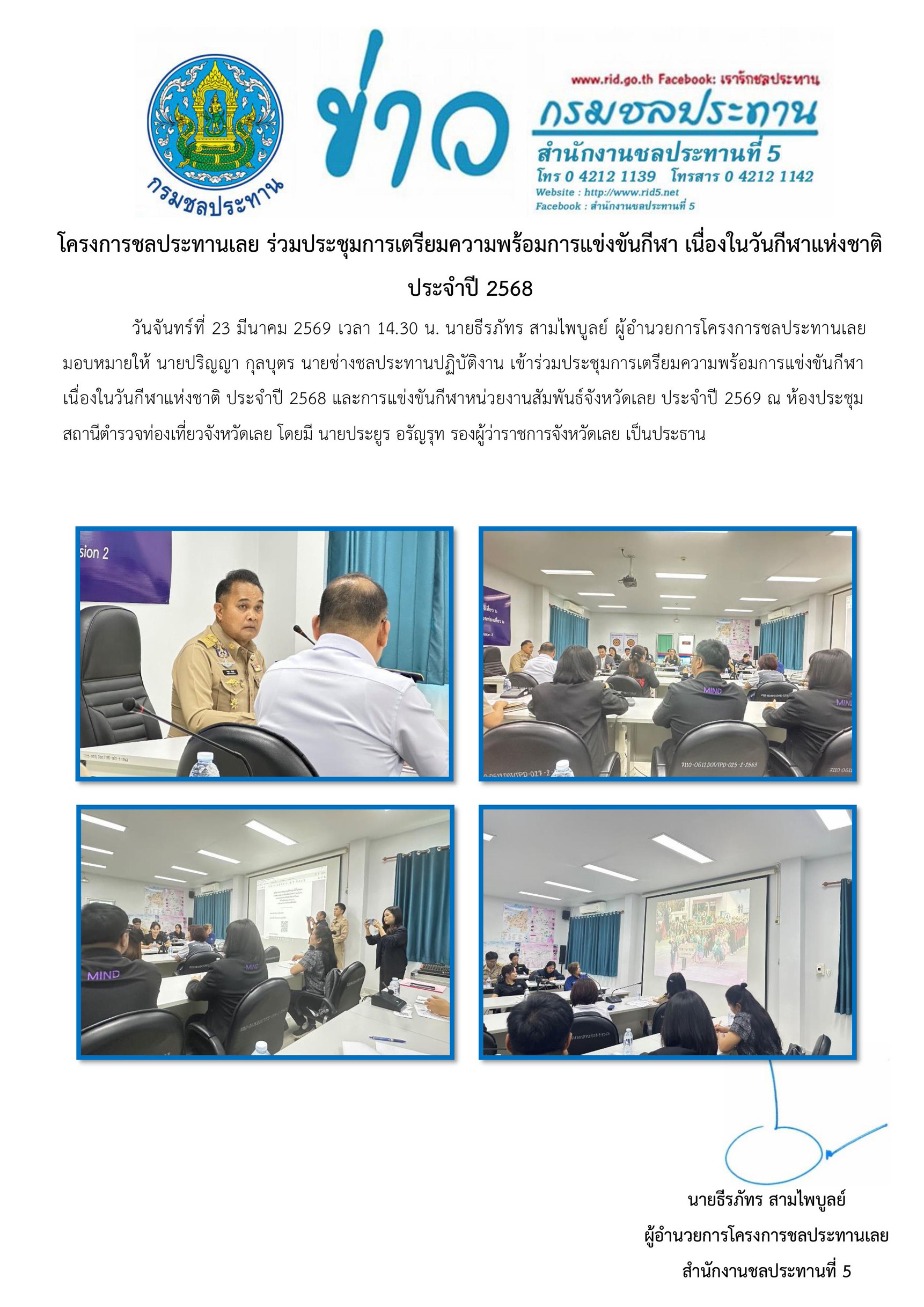 24มี.ค.24 มีนาคม 2026 โครงการชลประทานเลย ร่วมประชุมการเตรียมความพร้อมการแข่งขันกีฬา เนื่องในวันกีฬาแห่งชาติ ประจำปี 2568 rid5loei@gmail.com2026-03-24T09:34:09+07:00 ข่าวประชาสัมพันธ์