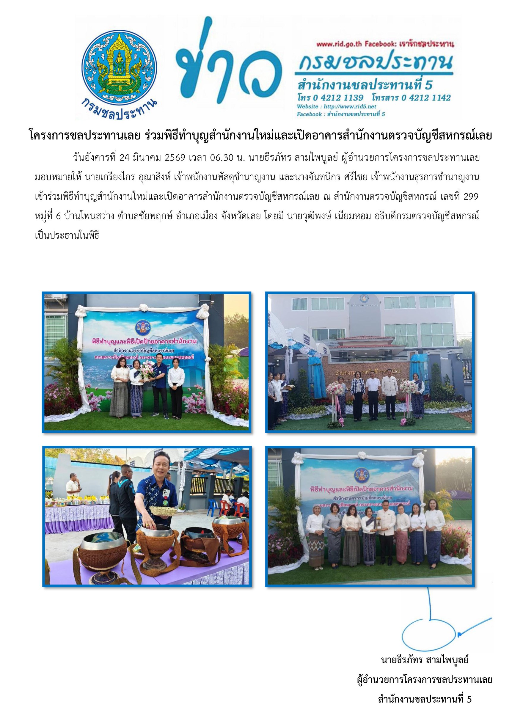 24มี.ค.24 มีนาคม 2026 โครงการชลประทานเลย ร่วมพิธีทำบุญสำนักงานใหม่และเปิดอาคารสำนักงานตรวจบัญชีสหกรณ์เลย rid5loei@gmail.com2026-03-31T14:34:53+07:00 ข่าวประชาสัมพันธ์