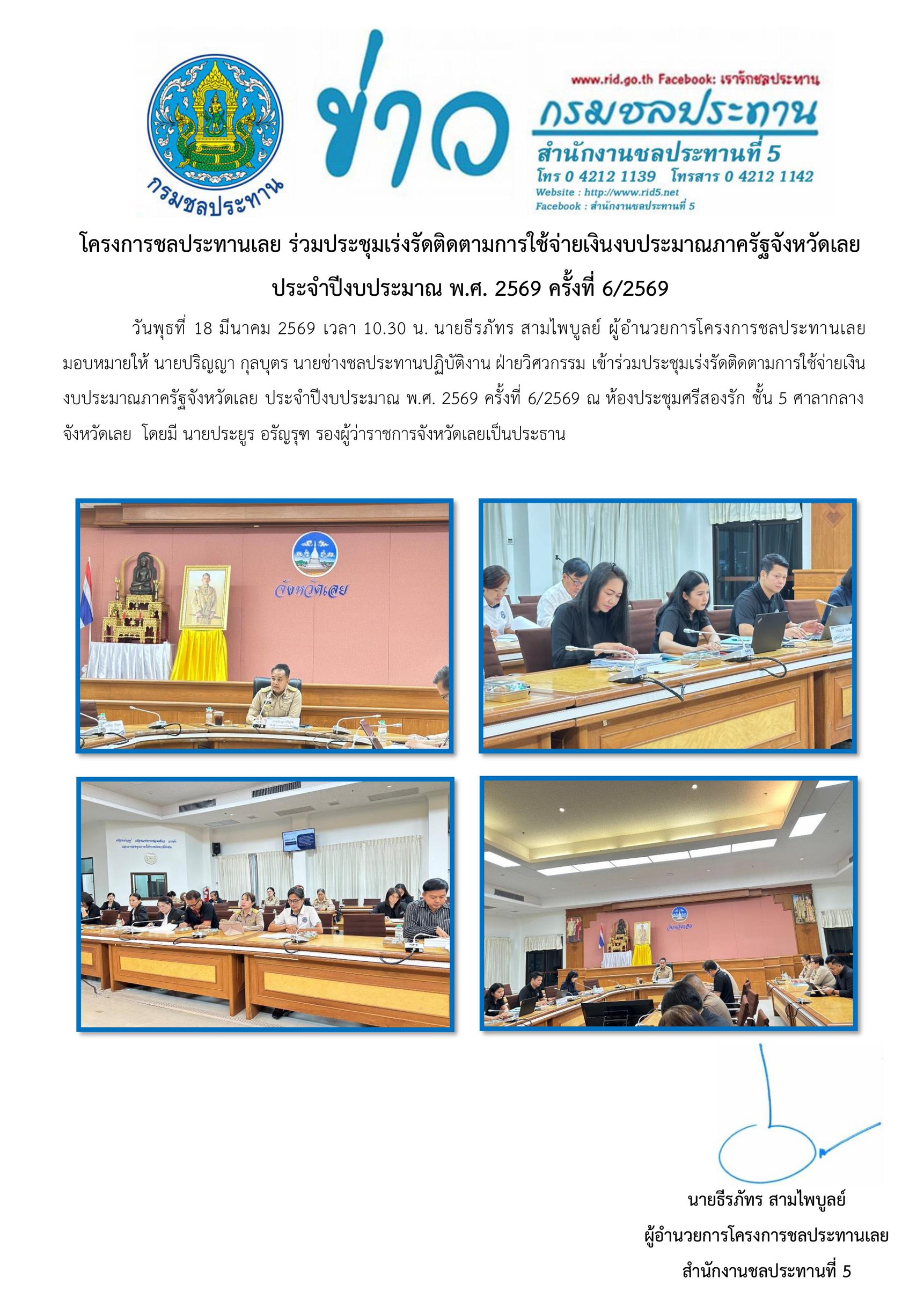 18มี.ค.18 มีนาคม 2026 ร่วมประชุมเร่งรัดติดตามการใช้จ่ายเงินงบประมาณภาครัฐจังหวัดเลยประจำปิ๊งบประมาณ พ.ศ. 2569 ครั้งที่ 6/2569 rid5loei@gmail.com2026-03-18T11:39:14+07:00 ข่าวประชาสัมพันธ์