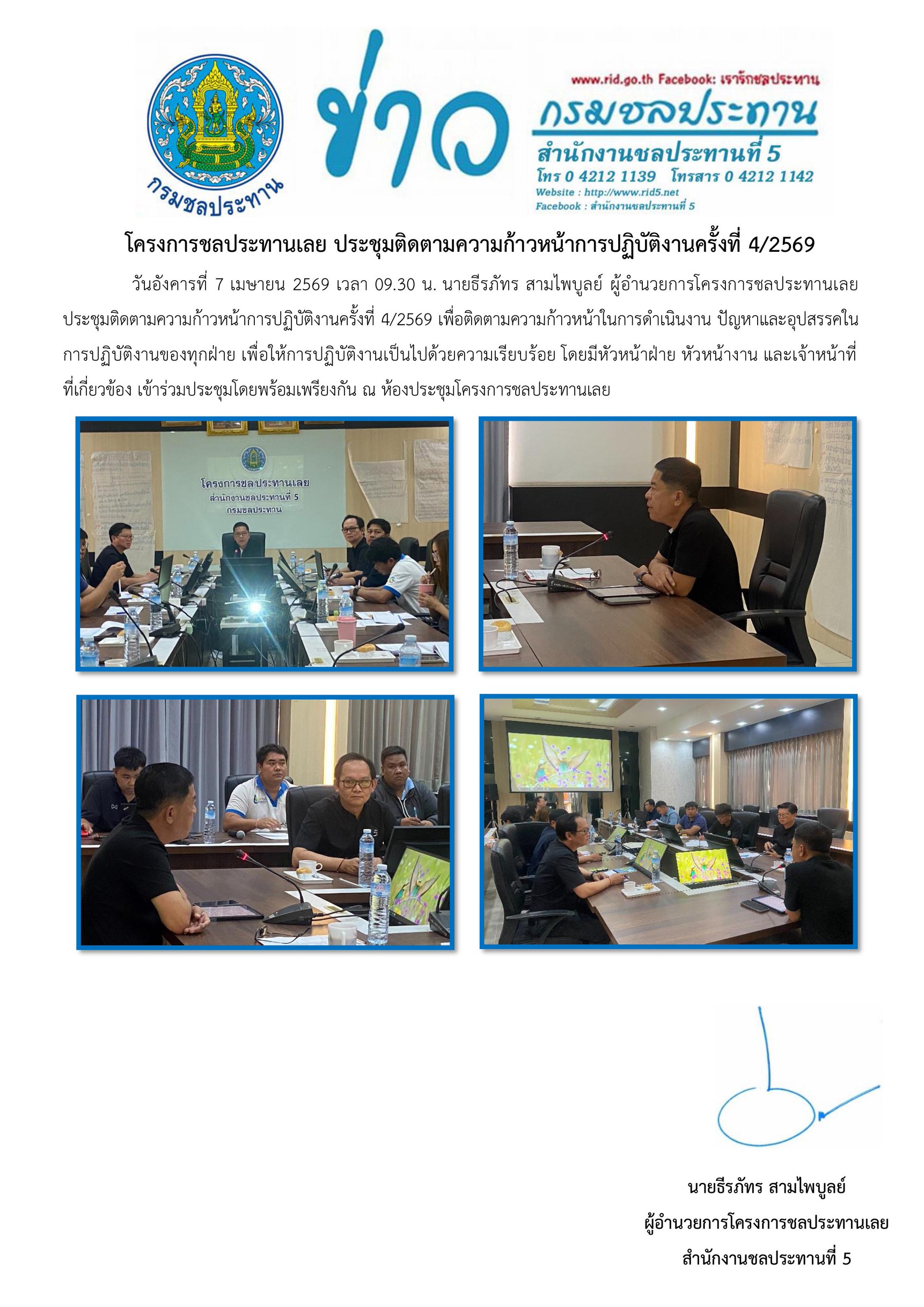 07เม.ย.7 เมษายน 2026 โครงการชลประทานเลย ประชุมติดตามความก้าวหน้าการปฏิบัติงานครั้งที่ 4/2569 rid5loei@gmail.com2026-04-07T13:39:40+07:00 ข่าวประชาสัมพันธ์