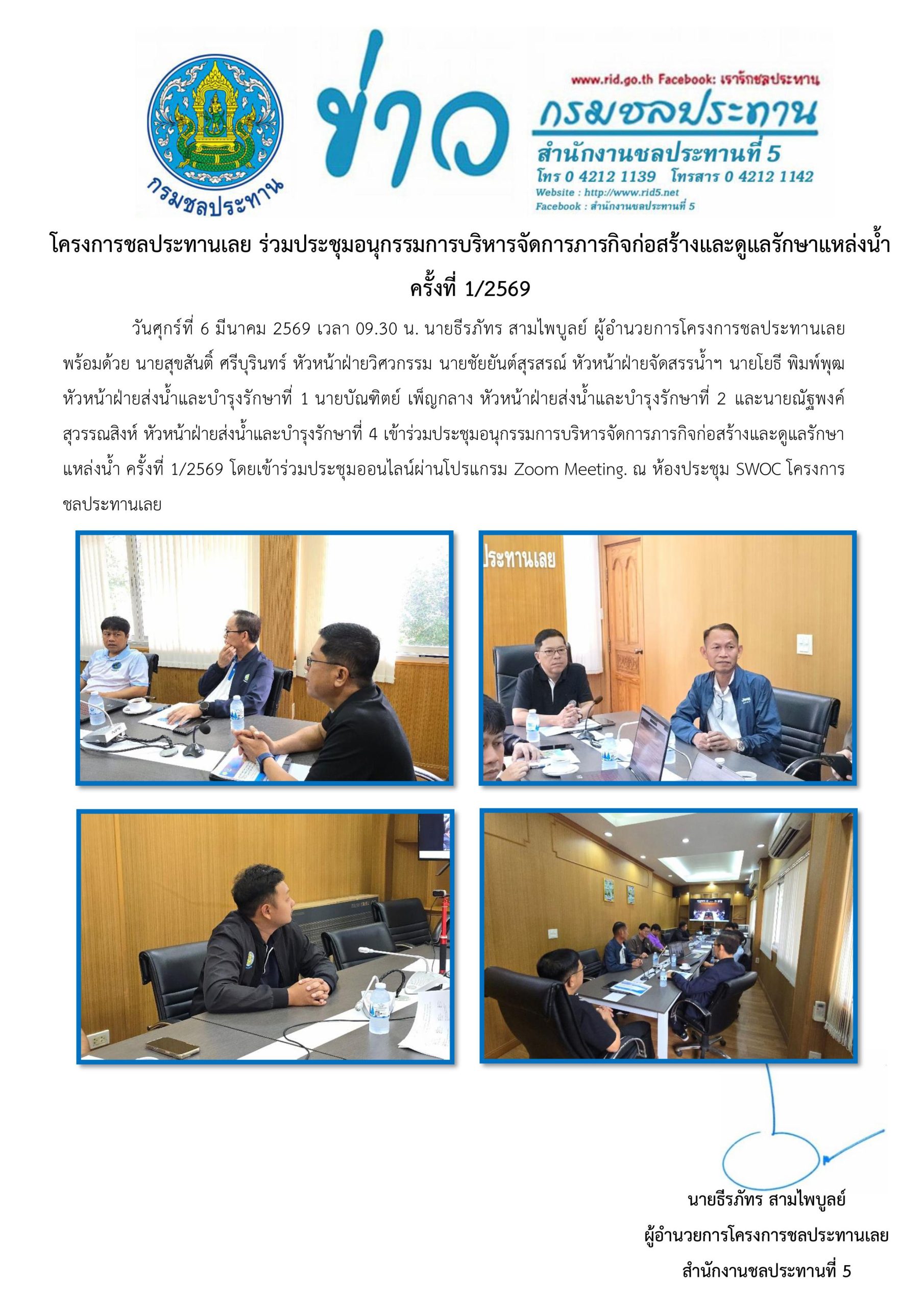 โครงการชลประทานเลย ร่วมประชุมอนุกรรมการบริหารจัดการภารกิจก่อสร้างและดูแลรักษาแหล่งน้ำ ครั้งที่ 1/2569