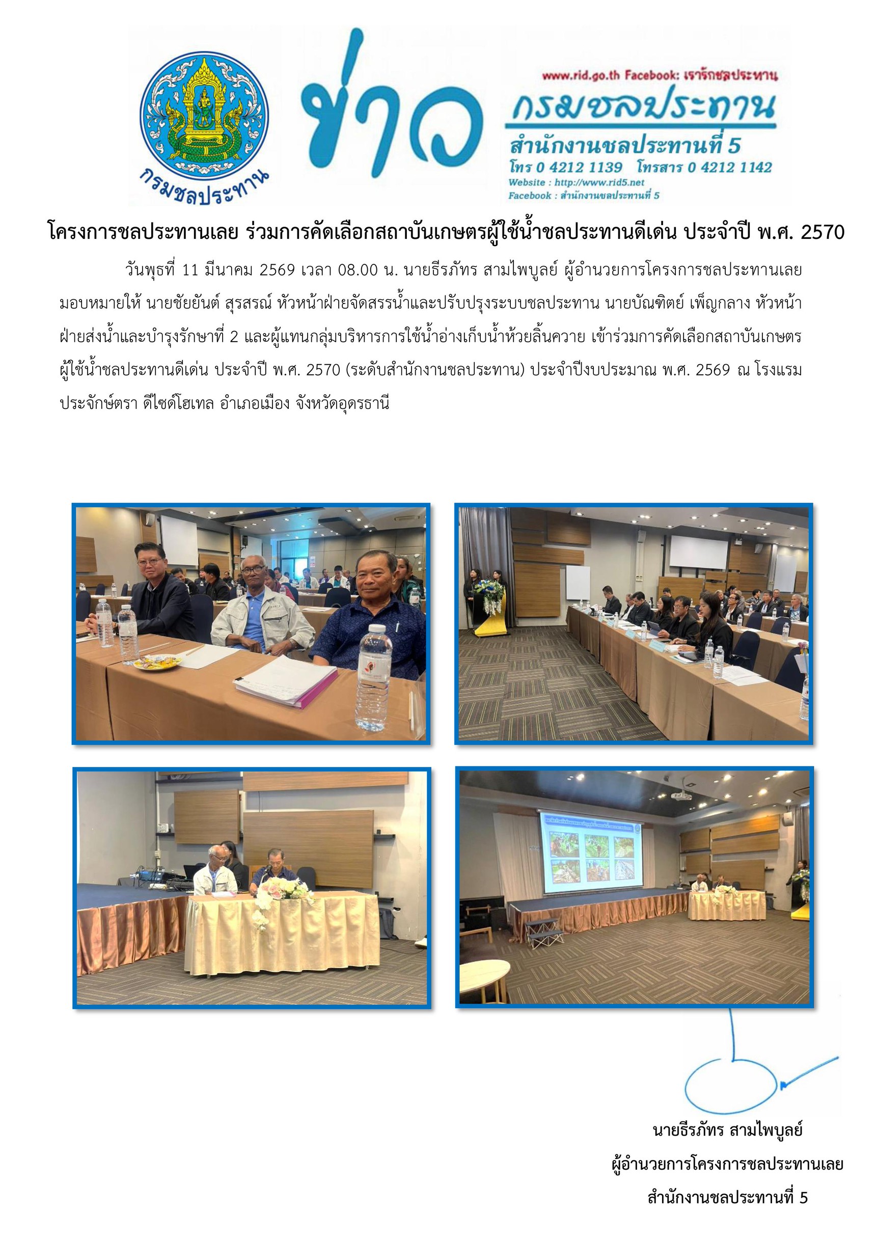 16มี.ค.16 มีนาคม 2026 โครงการชลประทานเลย ร่วมการคัดเลือกสถาบันเกษตรผู้ใช้น้ำชลประทานดีเด่น ประจำปี พ.ศ. 2570 rid5loei@gmail.com2026-03-16T10:08:59+07:00 ข่าวประชาสัมพันธ์