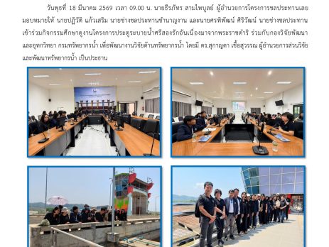 โครงการชลประทานเลย ร่วมกิจกรรมศึกษาดูงานโครงการประตูระบายน้ำศรีสองรักอันเนื่องมาจากพระราชดำริ