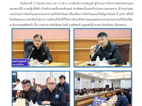 โครงการชลประทานเลย ร่วมประชุมกองอำนวยการป้องกันและบรรเทาสาธารณภัยจังหวัดเลยเพื่อเตรียมการป้องกันและแก้ไขปัญหาภัยแล้ง ปี 2569