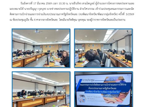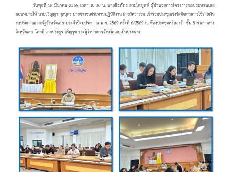 ร่วมประชุมเร่งรัดติดตามการใช้จ่ายเงินงบประมาณภาครัฐจังหวัดเลยประจำปิ๊งบประมาณ พ.ศ. 2569 ครั้งที่ 6/2569
