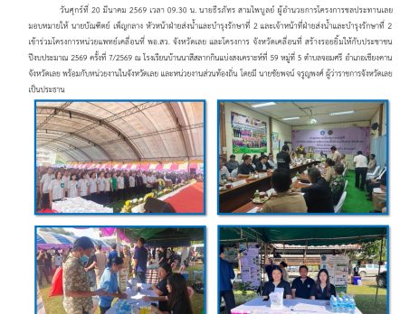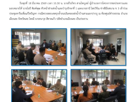โครงการชลประทานเลย ร่วมประชุมหารือเพื่อแก้ไขปัญหา กรณีตรวจสอบเขตรุกล้ำถนนริมคลองส่งน้ำบ้านสามแยกปากภู